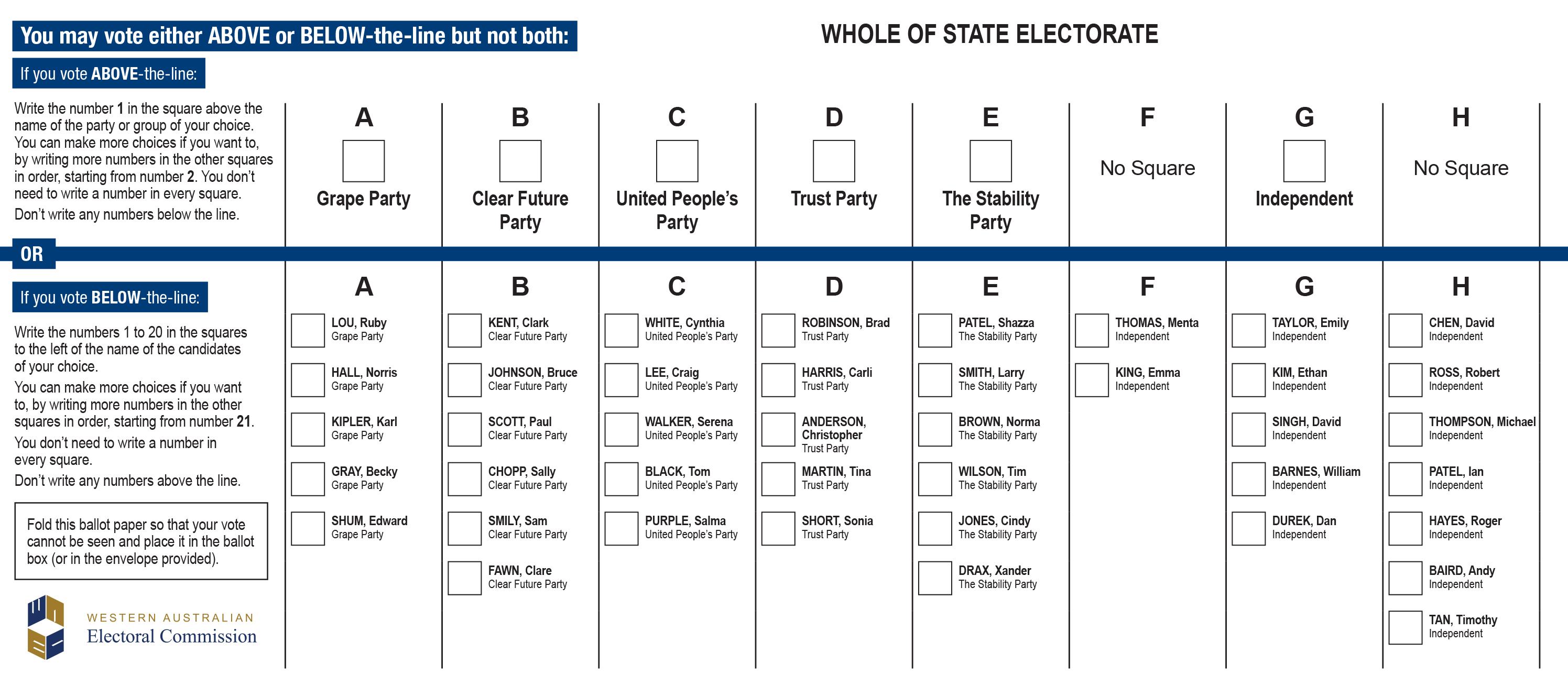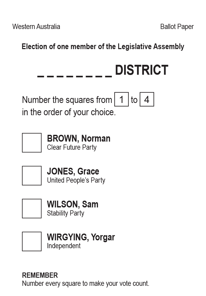 Example Legislative Assembly Ballot Paper